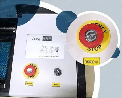 Implementa un botón de emergencia que facilita la detención inmediata del láser ante cualquier situación inesperada.
