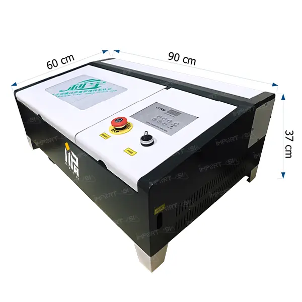 La máquina láser KL-320 presenta un diseño compacto, lo que la convierte en una opción ideal para una variedad de entornos laborales. Con unas dimensiones totales de: 60 cm de largo, 90 cm de ancho y 37 cm de alto, su tamaño la hace versátil para diferentes espacios. Además, sus patas inferiores proporcionan una gran estabilidad, permitiendo realizar los trabajos que necesites con confianza.