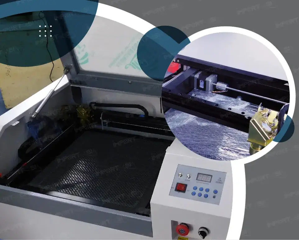 La máquina láser SP - 4040 presenta un diseño compacto, lo que la convierte en una opción ideal para una variedad de entornos laborales. Con unas dimensiones totales de: 98 cm de largo, 82 cm de ancho y 60 cm de alto, su tamaño la hace versátil para diferentes espacios. Además, sus patas inferiores proporcionan una gran estabilidad, permitiendo realizar los trabajos que necesites con confianza.