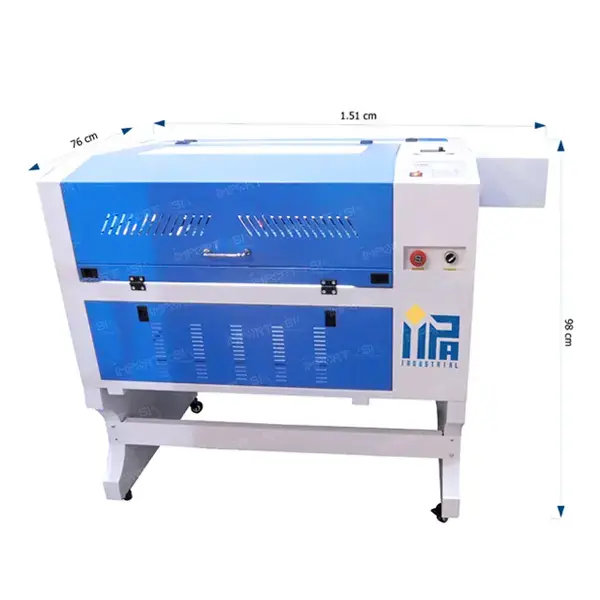 La máquina láser SP - 4060 presenta un diseño compacto, lo que la convierte en una opción ideal para una variedad de entornos laborales. Con unas dimensiones totales de: 60 cm de largo, 90 cm de ancho y 37 cm de alto, su tamaño la hace versátil para diferentes espacios. Además, sus patas inferiores proporcionan una gran estabilidad, permitiendo realizar los trabajos que necesites con confianza.